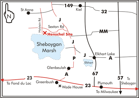 If you can get to Hwy 23, you can find your way to the Henschel Site. From “J” turn west on Sexton Road, turn south on Holstein Road. 1/2 mile.